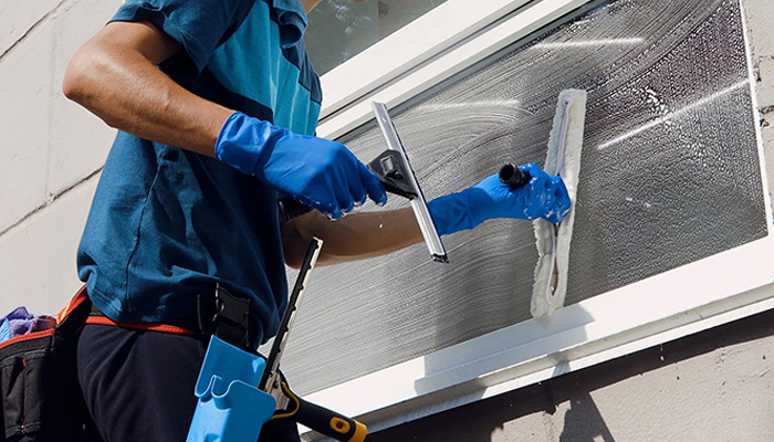 Window cleaning using DI (Deionized) water is a method that uses purified water to clean windows without leaving streaks or water spots. DI water is free from minerals and impurities, so when it’s sprayed onto the glass, it evaporates cleanly, leaving no residue behind.